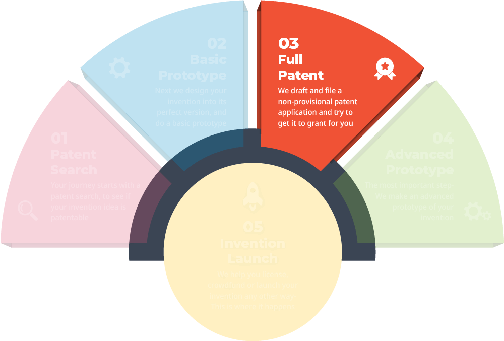 One of our patent practitioners drafts a full non-provisional patent application for you, files it at the patent office, and tries to get your invention patented.